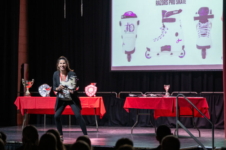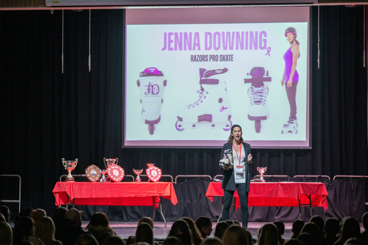 This year, we were delighted to welcome world champion inline skater Jenna Downing to speak at our annual Sports Awards Evening. Jenna is a mulitple British champion, European champion and X games silver medallist. She is also a best-selling author, mentor and skating coach. Throughout her speech, Jenna reinforced our two school values of respect and excellence, speaking to our students about what it means to have a champion mindset, not being afraid to dream big, being prepared to work hard and staying focussed on the goal. Jenna was inspirational in the way she spoke and the messages she delivered and we are truly grateful for her support.